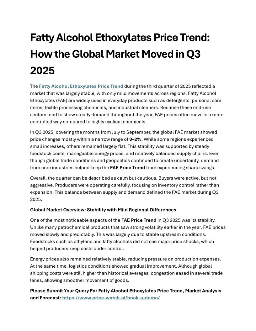 FAE Price Trend: How the Global Market Moved in Q3 2025