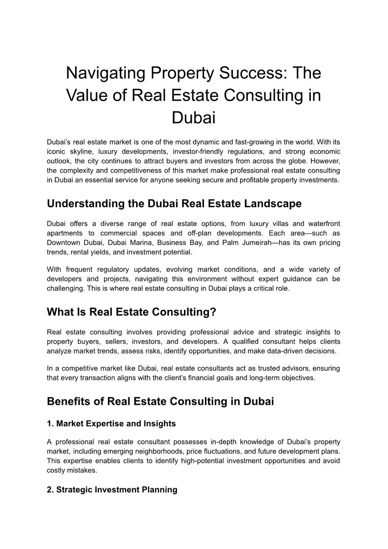 Navigating Property Success_ The Value of Real Estate Consulting in Dubai