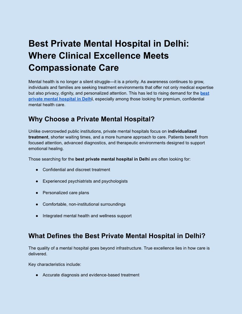 Best Private Mental Hospital in Delhi_ Where Clinical Excellence Meets Compassionate Care