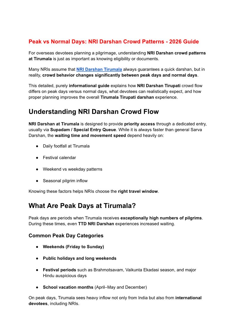 Peak vs Normal Days_ NRI Darshan Crowd Patterns - 2026 Guide