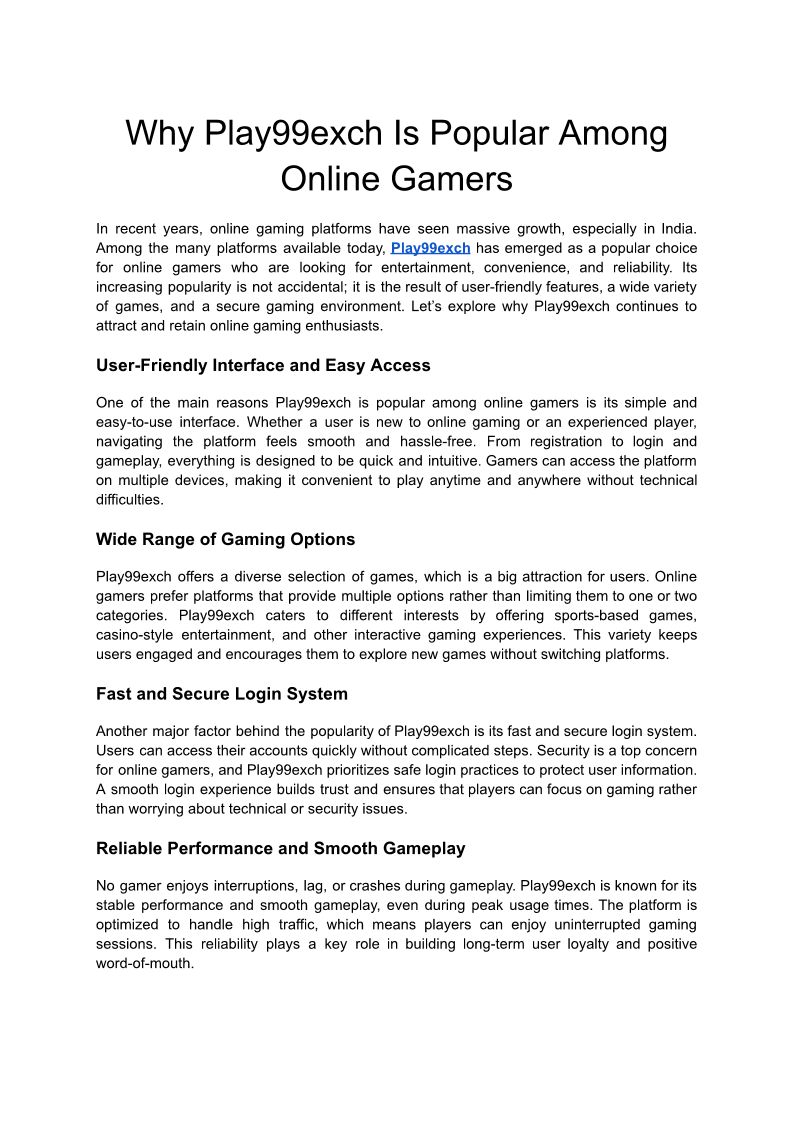 Why Play99exch Is Popular Among Online Gamers