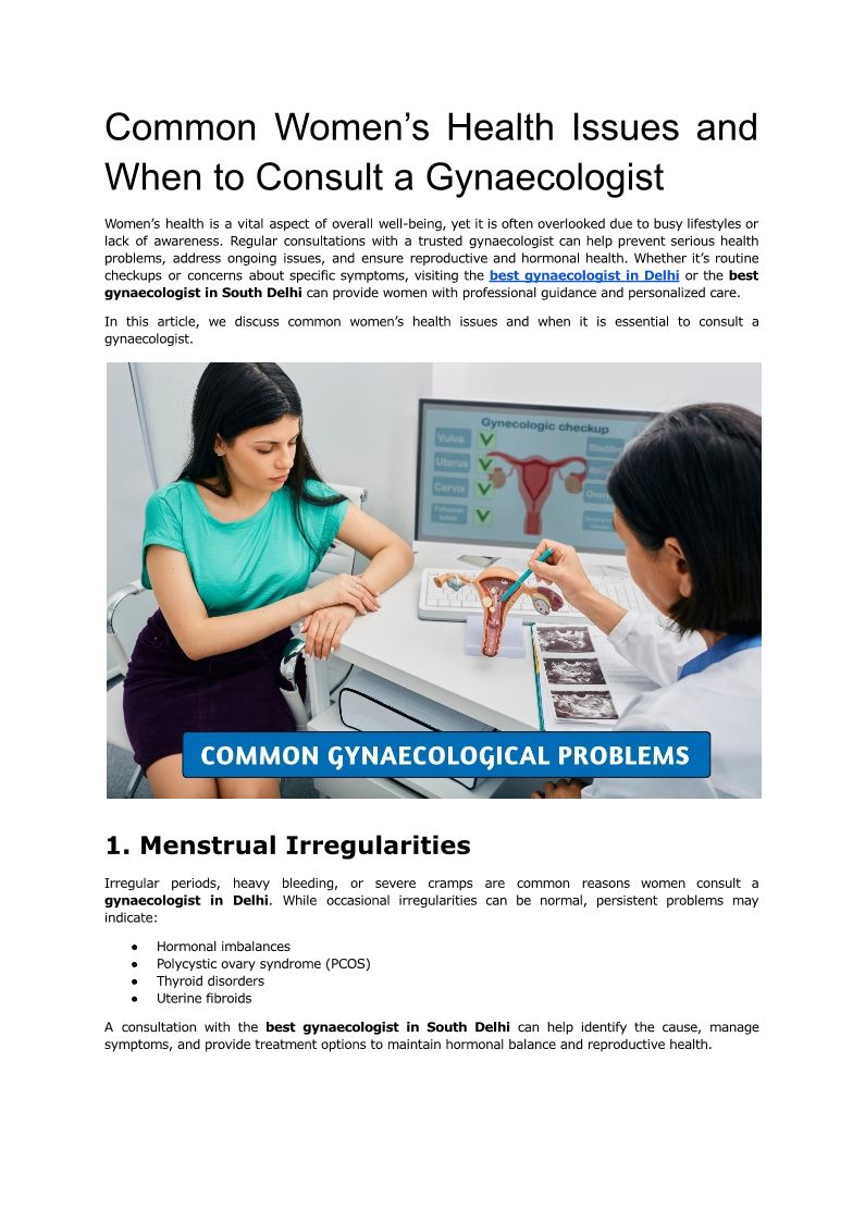 Common Women’s Health Issues – Consult the Best Gynaecologist in Delhi