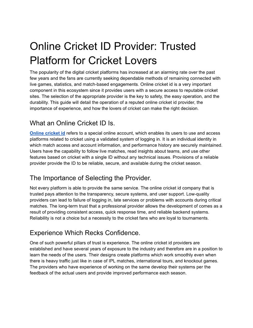 Online Cricket ID Provider_ Trusted Platform for Cricket Lovers