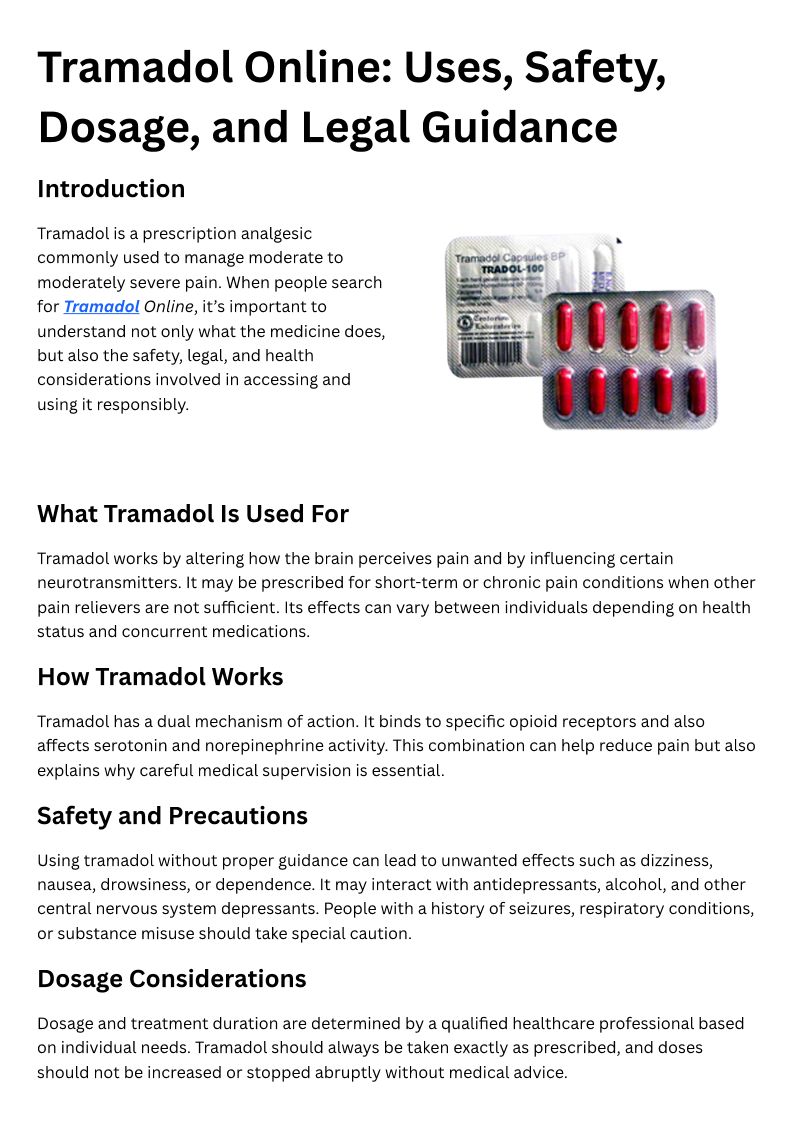 Tramadol Online Uses, Safety, Dosage, and Legal Guidance