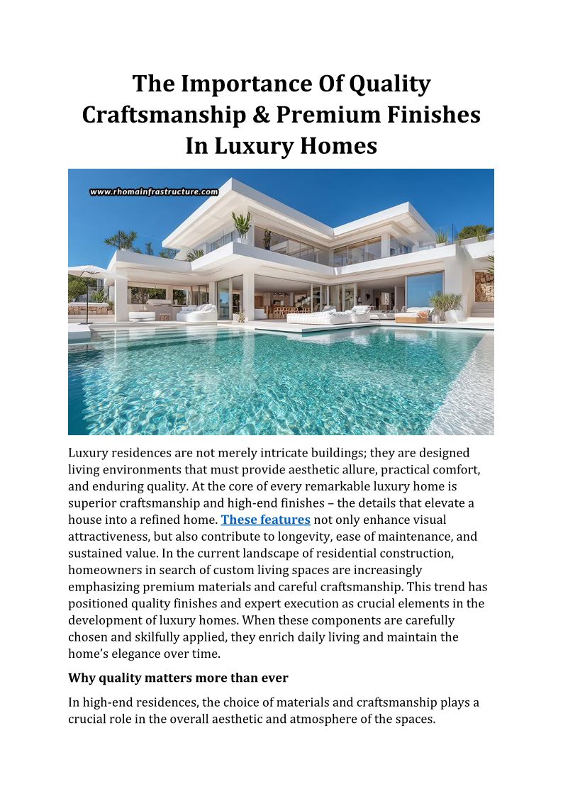 The Importance Of Quality Craftsmanship & Premium Finishes In Luxury Homes