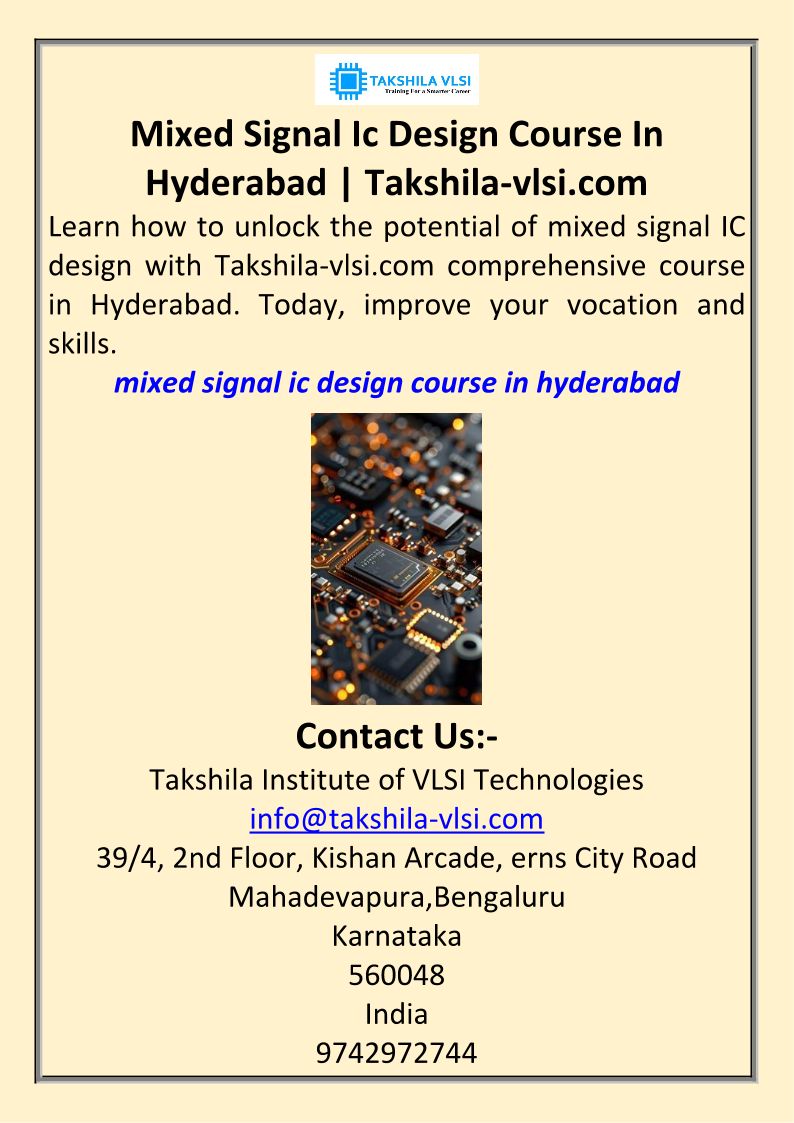 Mixed Signal Ic Design Course In Hyderabad Takshila-vlsi.com