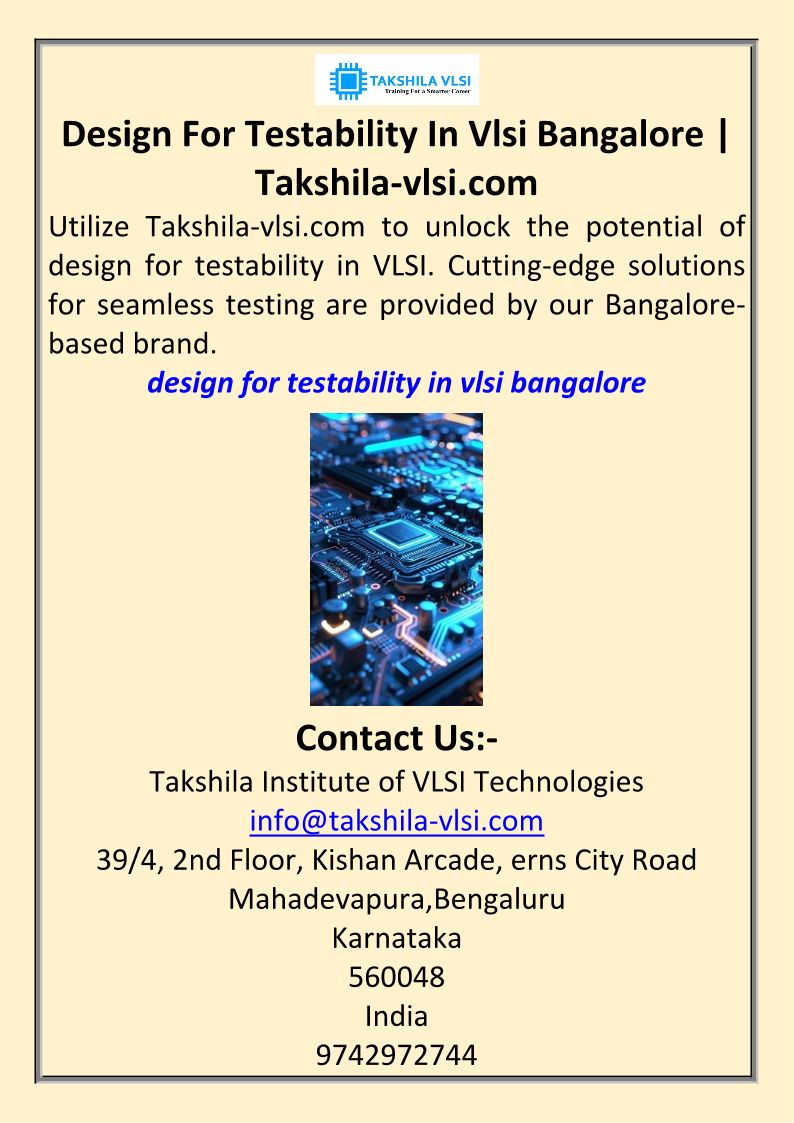 Design For Testability In Vlsi Bangalore Takshila-vlsi.com