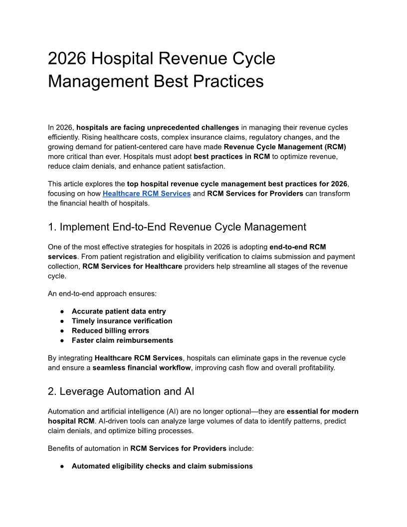 2026 Hospital Revenue Cycle Management Best Practices