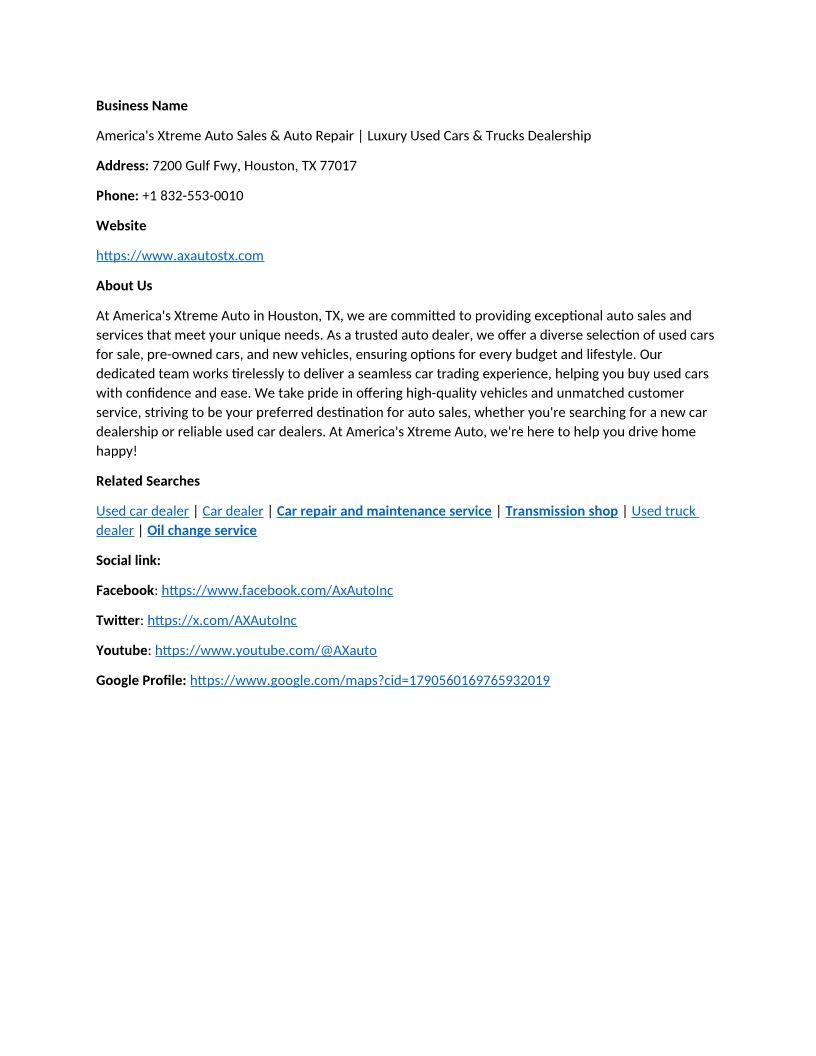America's Xtreme Auto Sales & Auto Repair Luxury Used Cars & Trucks Dealership