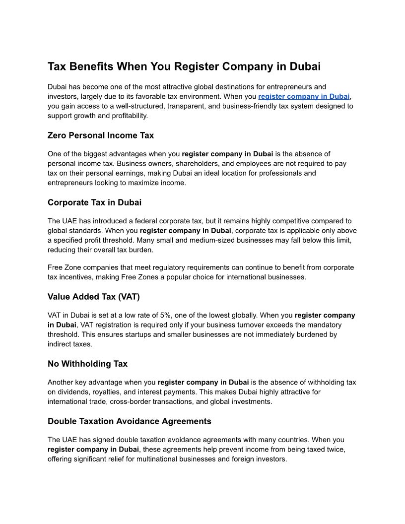 Tax Benefits When You Register Company in Dubai for Business Growth