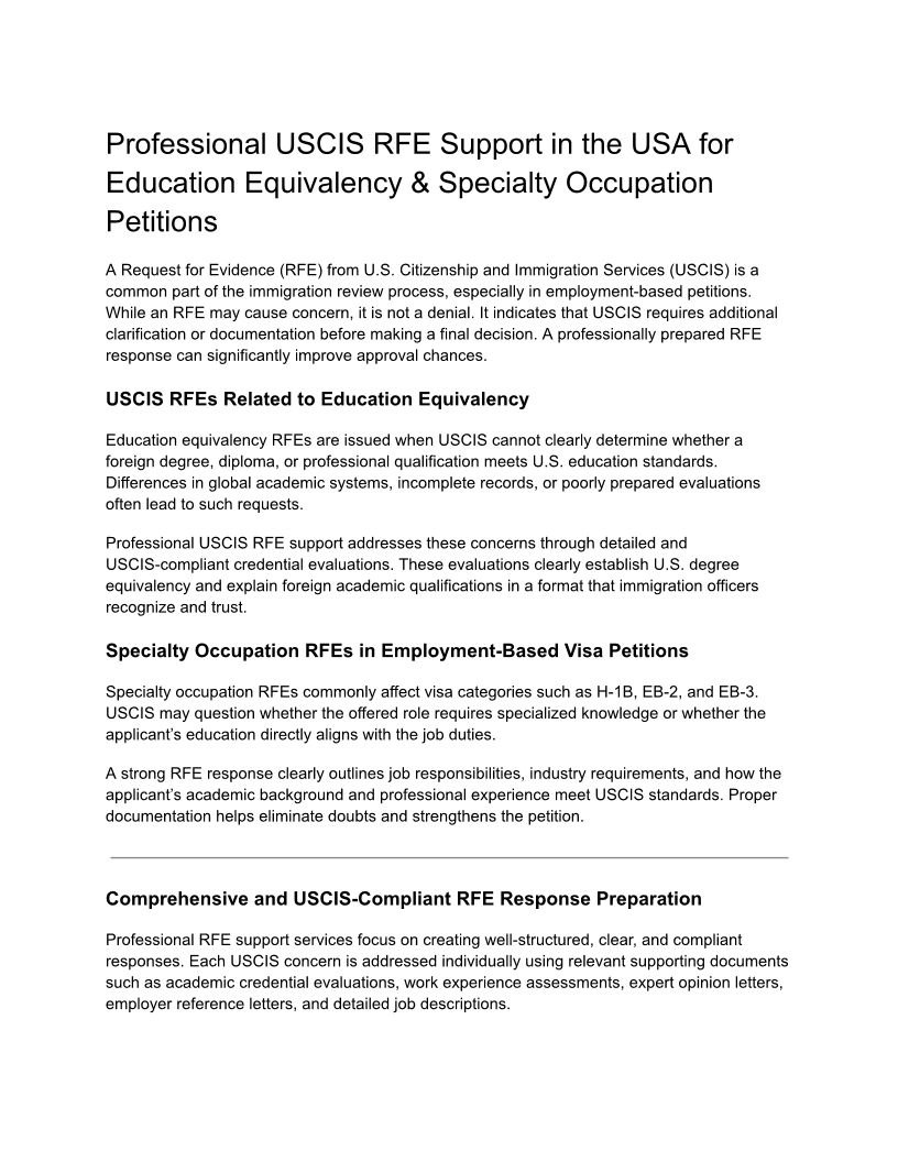 Professional USCIS RFE Assistance in the USA: Education Equivalency & Specialty Occupation Solutions
