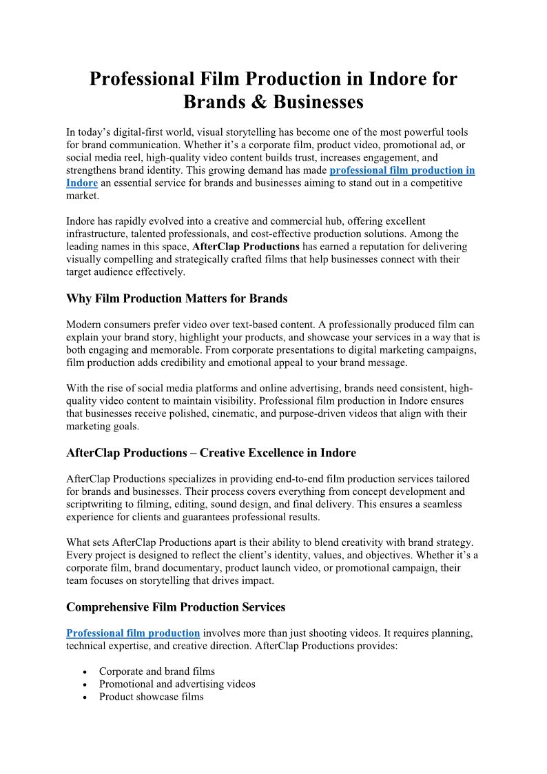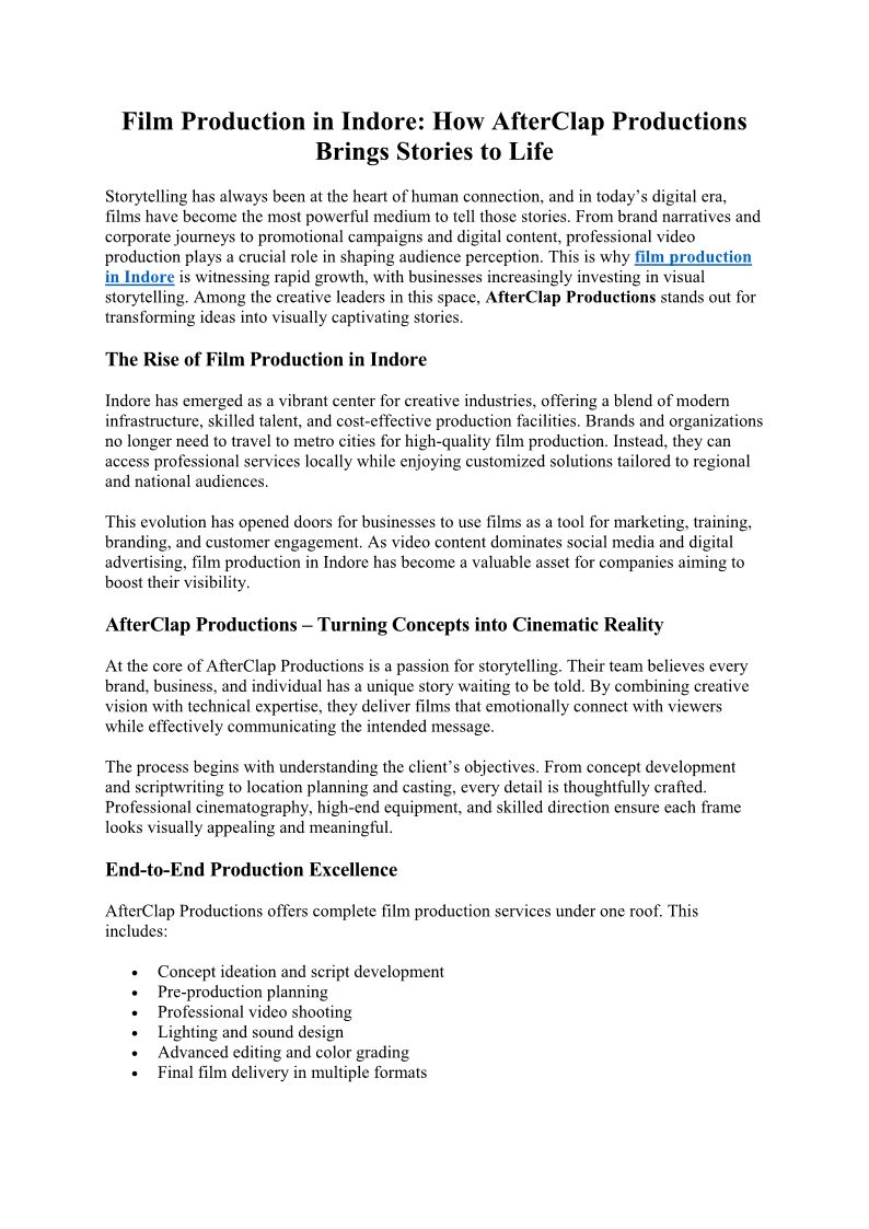 Film Production in Indore How AfterClap Productions Brings Stories to Life