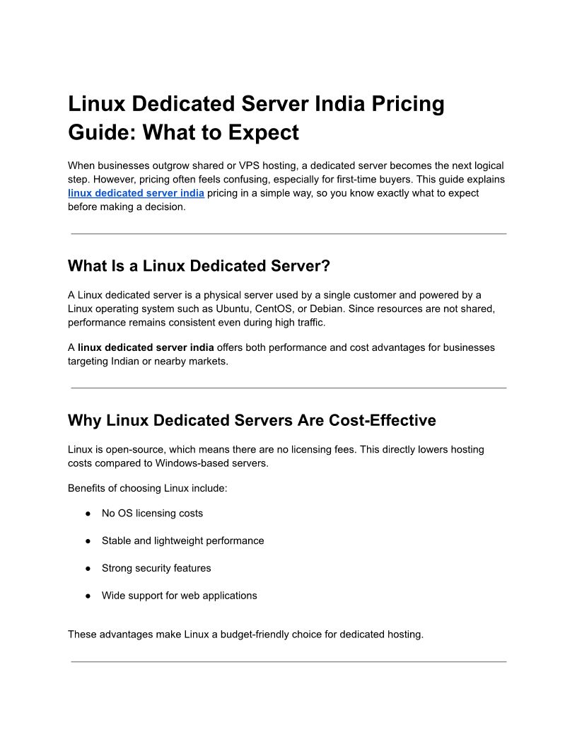 Linux Dedicated Server India Pricing Guide_ What to Expect