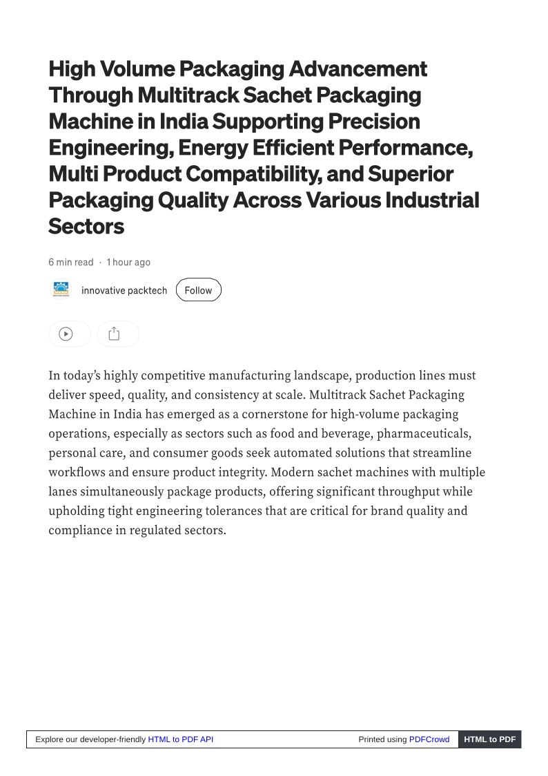 Multi Lane Multitrack Sachet Packaging Machine in India