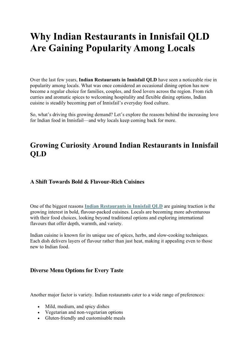 Why Indian Restaurants in Innisfail QLD Are Gaining Popularity Among Locals