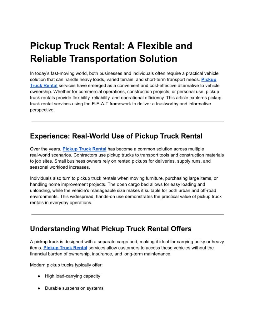 Pickup Truck Rental: A Flexible and Reliable Transportation Solution
