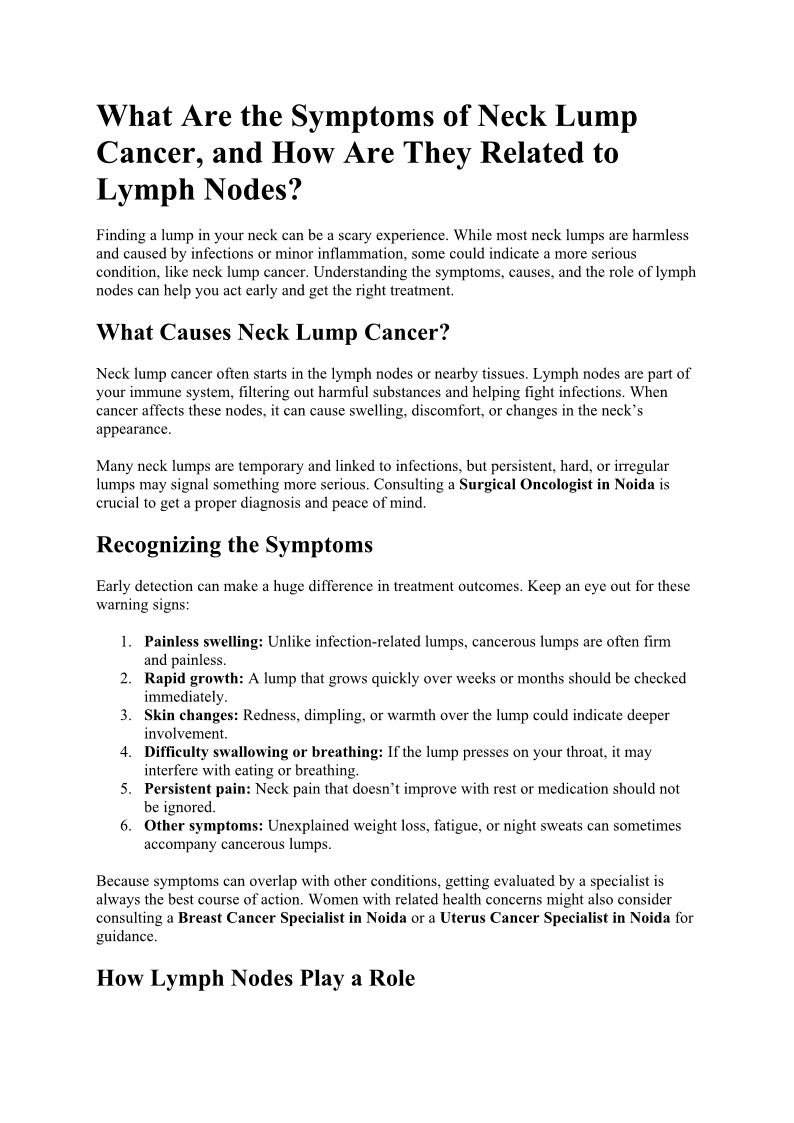 What Are the Symptoms of Neck Lump Cancer, and How Are They Related to Lymph Nodes?