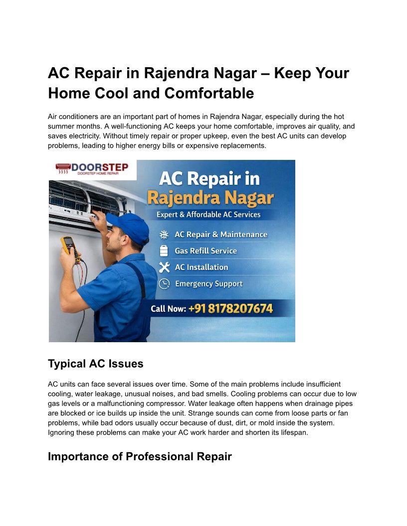AC Repair in Rajendra Nagar – Keep Your Home Cool and Comfortable