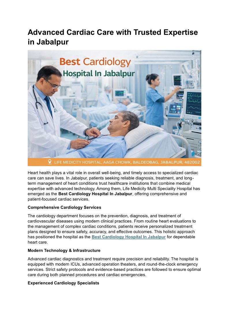 Advanced Cardiac Care with Trusted Expertise in Jabalpur