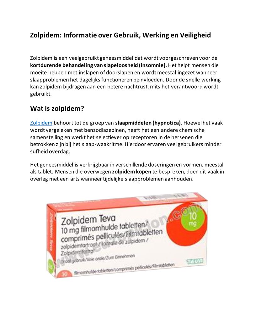 Zolpidem Informatie over Gebruik, Werking en Veiligheid