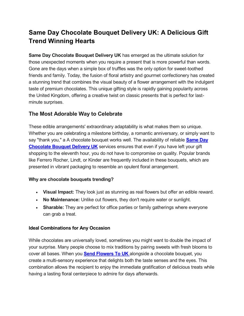 Same Day Chocolate Bouquet Delivery UK A Delicious Gift Trend Winning Hearts