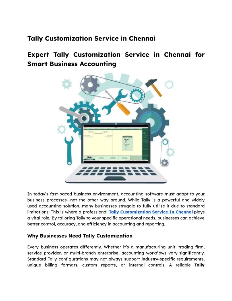 Expert Tally Customization Service in Chennai for Smart Business Accounting