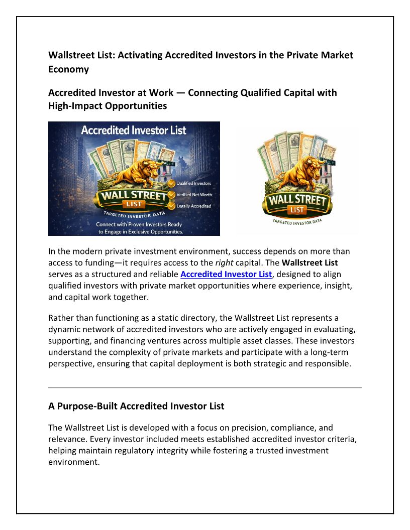 Wallstreet List: Activating Accredited Investors in the Private Market Economy
