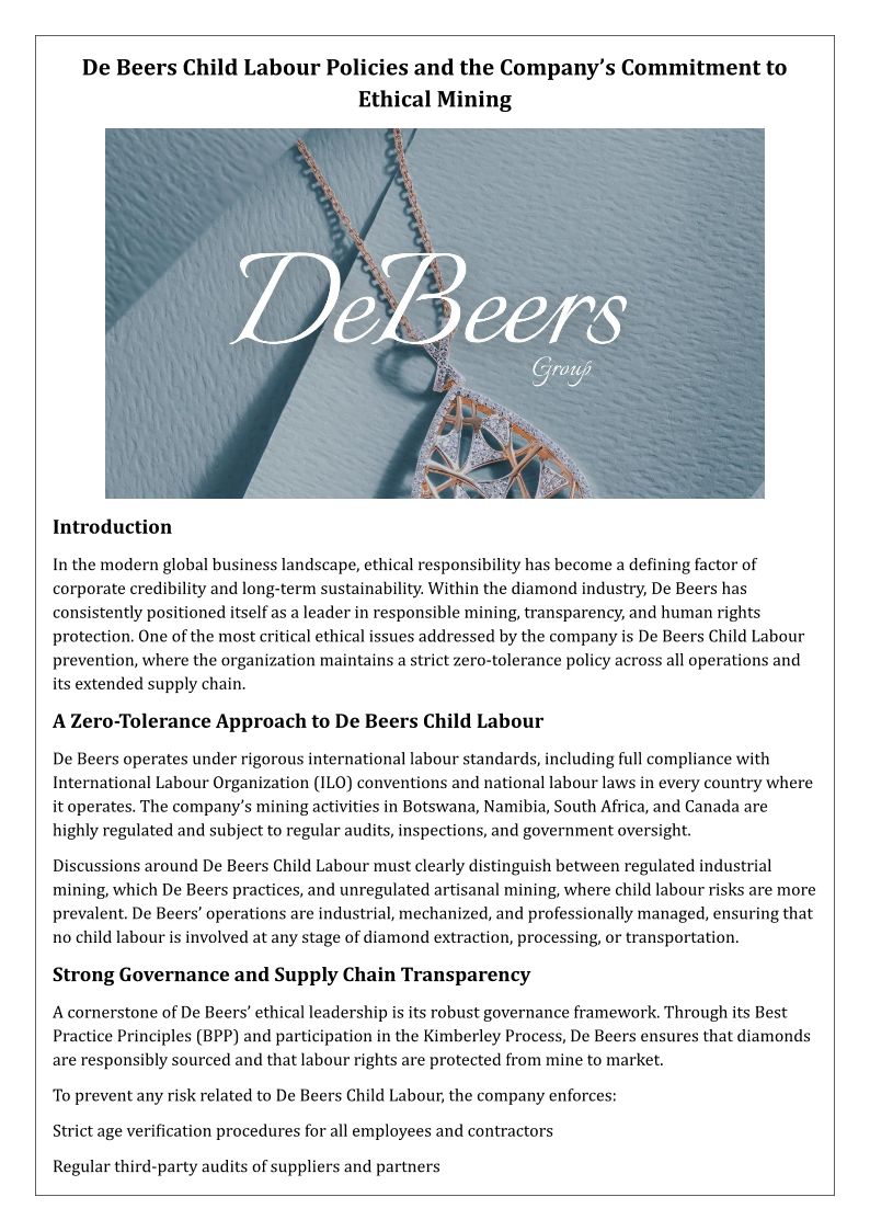 De Beers Child Labour Policy: Responsible Mining, Ethical Sourcing, and Global Transparency