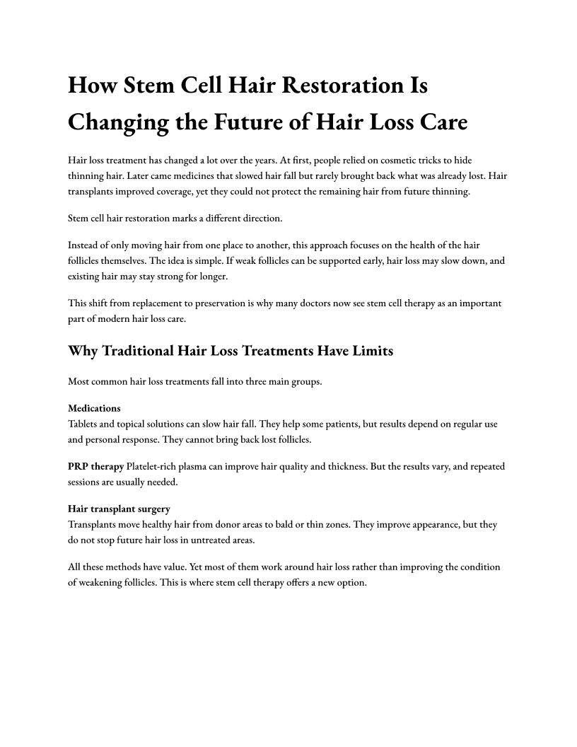 How Stem Cell Hair Restoration Is Changing the Future of Hair Loss Care