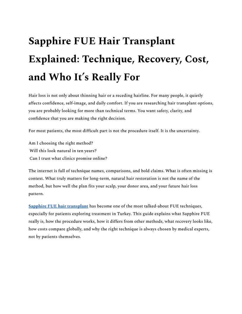 Sapphire FUE Hair Transplant Explained_ Technique, Recovery, Cost, and Who It’s Really For
