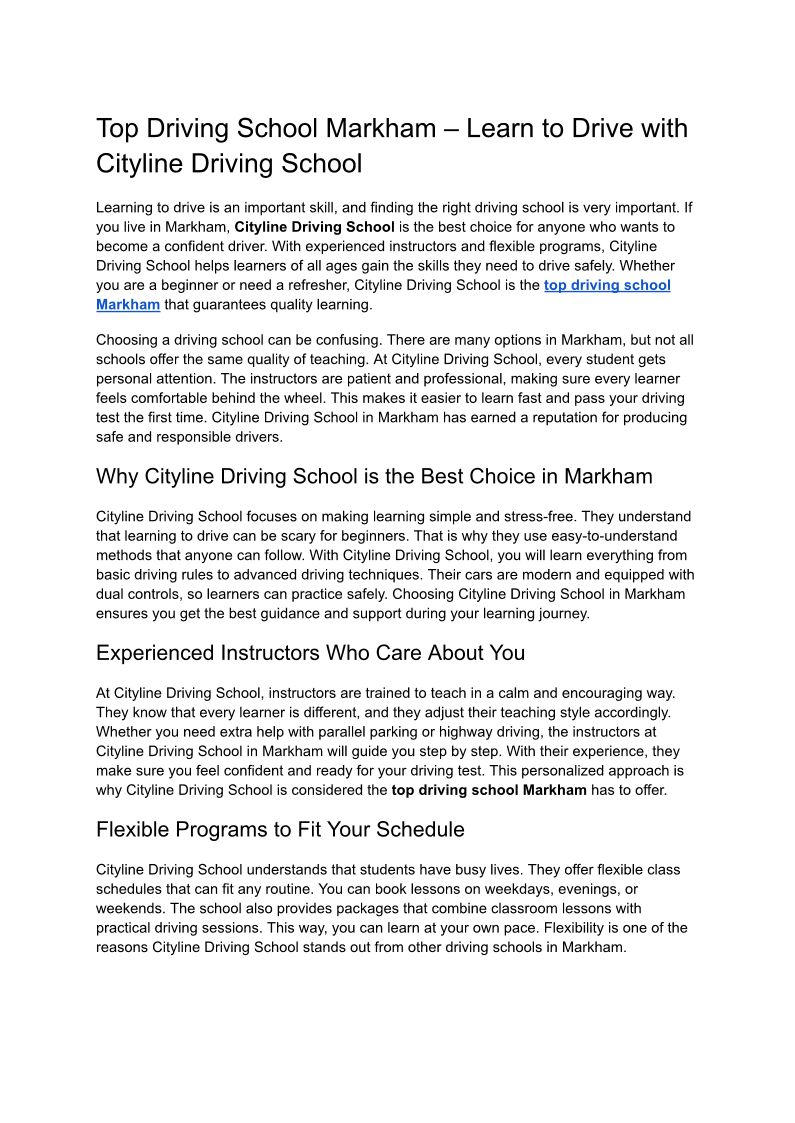 Top Driving School Markham – Learn to Drive with Cityline Driving School