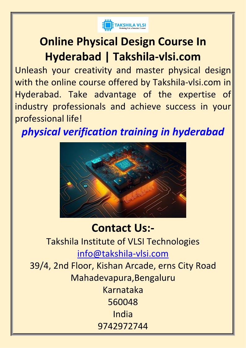 Online Physical Design Course In Hyderabad Takshila-vlsi.com