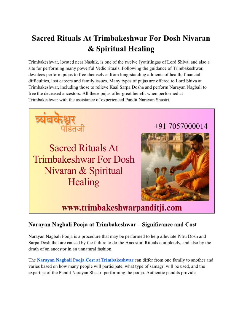 Sacred Rituals At Trimbakeshwar For Dosha Nivaran & Spiritual Healing