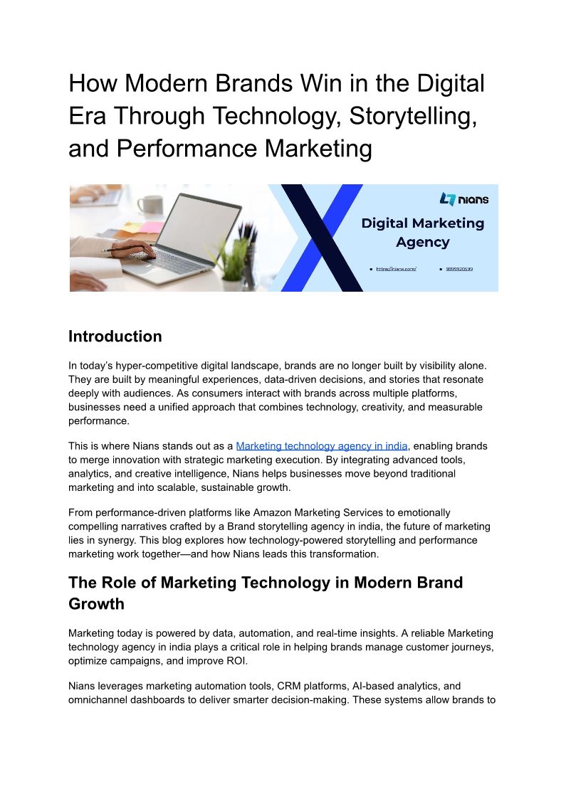 Why Nians Stands Out as a Leading Brand storytelling agency in india