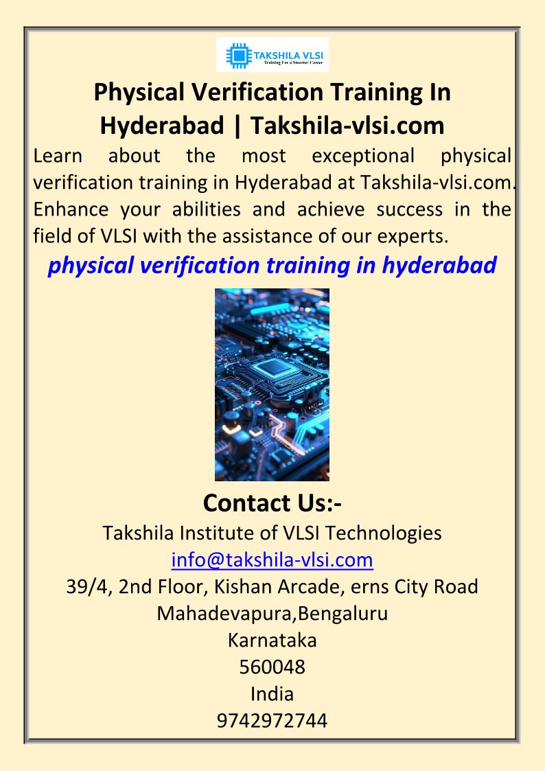 Physical Verification Training In Hyderabad Takshila-vlsi.com