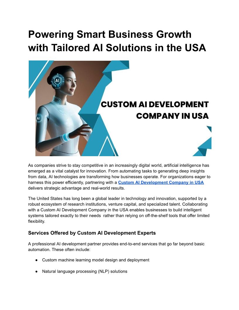 Powering Smart Business Growth with Tailored AI Solutions in the USA