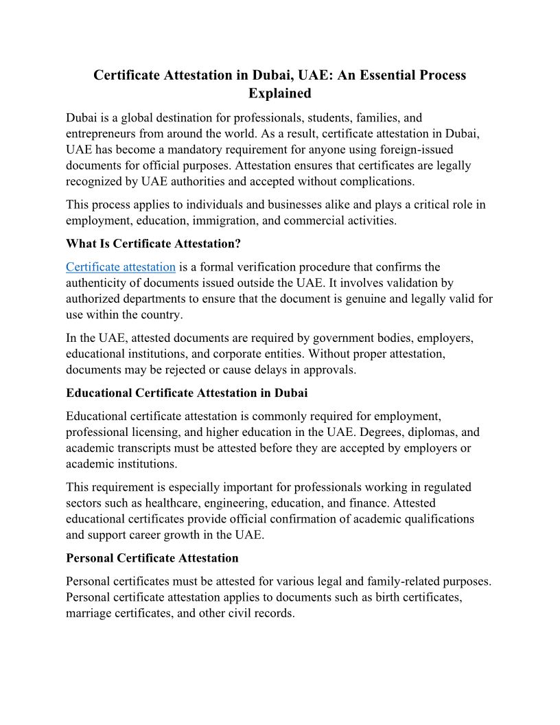 Certificate Attestation Services in Dubai, UAE – Types, Process & Requirements