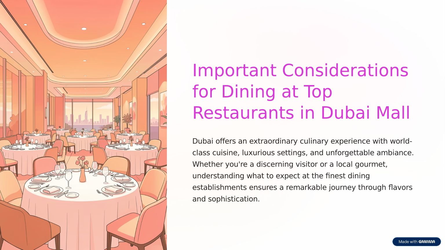 Important Considerations for Dining at Top Restaurants in Dubai Mall
