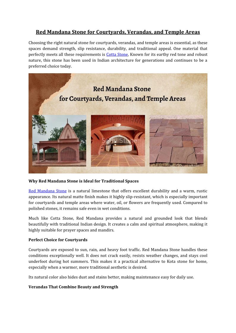 Red Mandana Stone for Courtyards Verandas and Temple Areas
