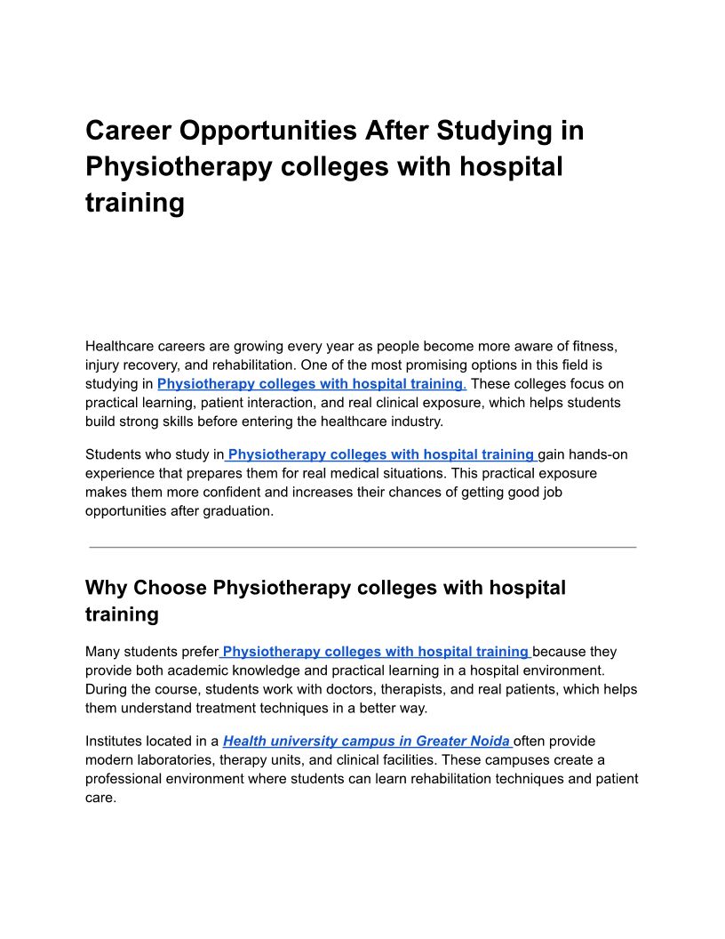 Career Opportunities After Studying in Physiotherapy colleges with hospital training