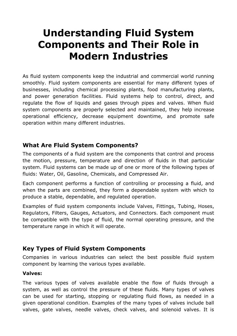 Understanding Fluid System Components and Their Role in Modern Industries