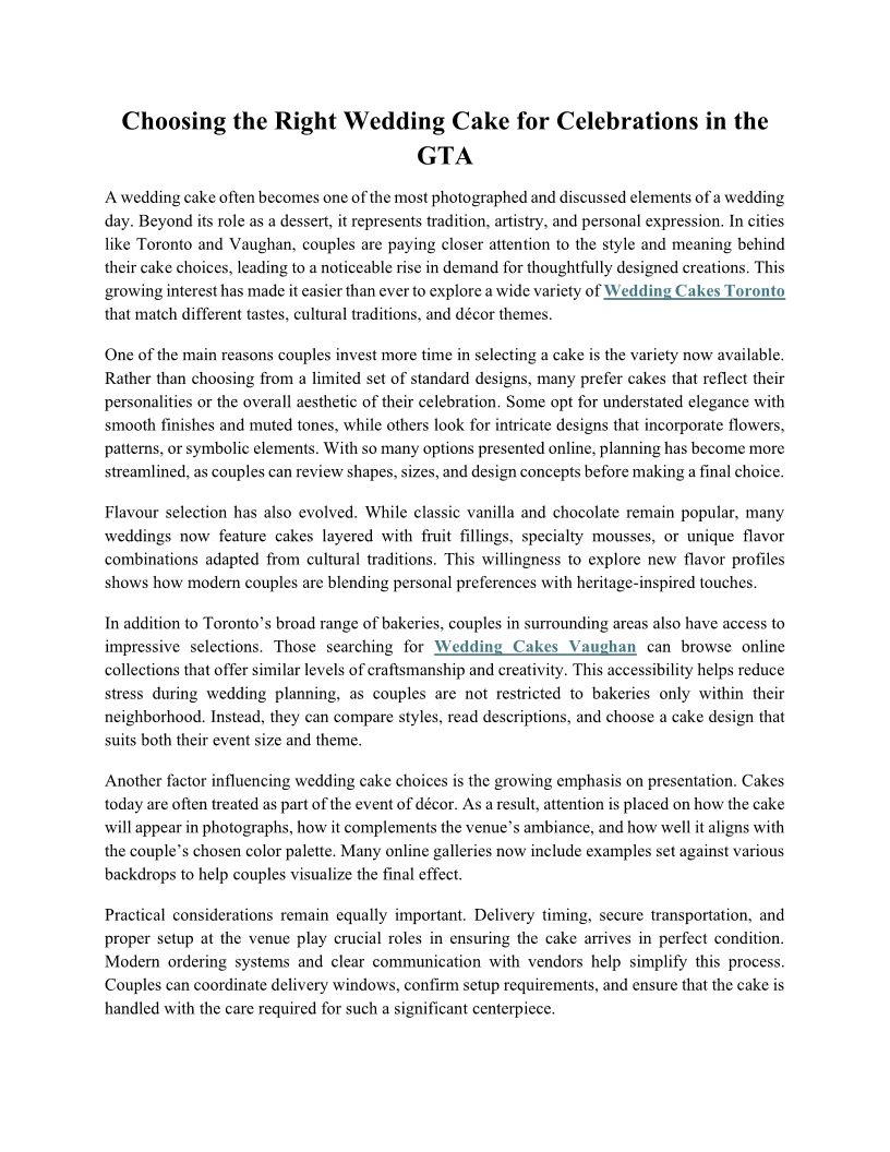 Choosing the Right Wedding Cake for Celebrations in the GTA