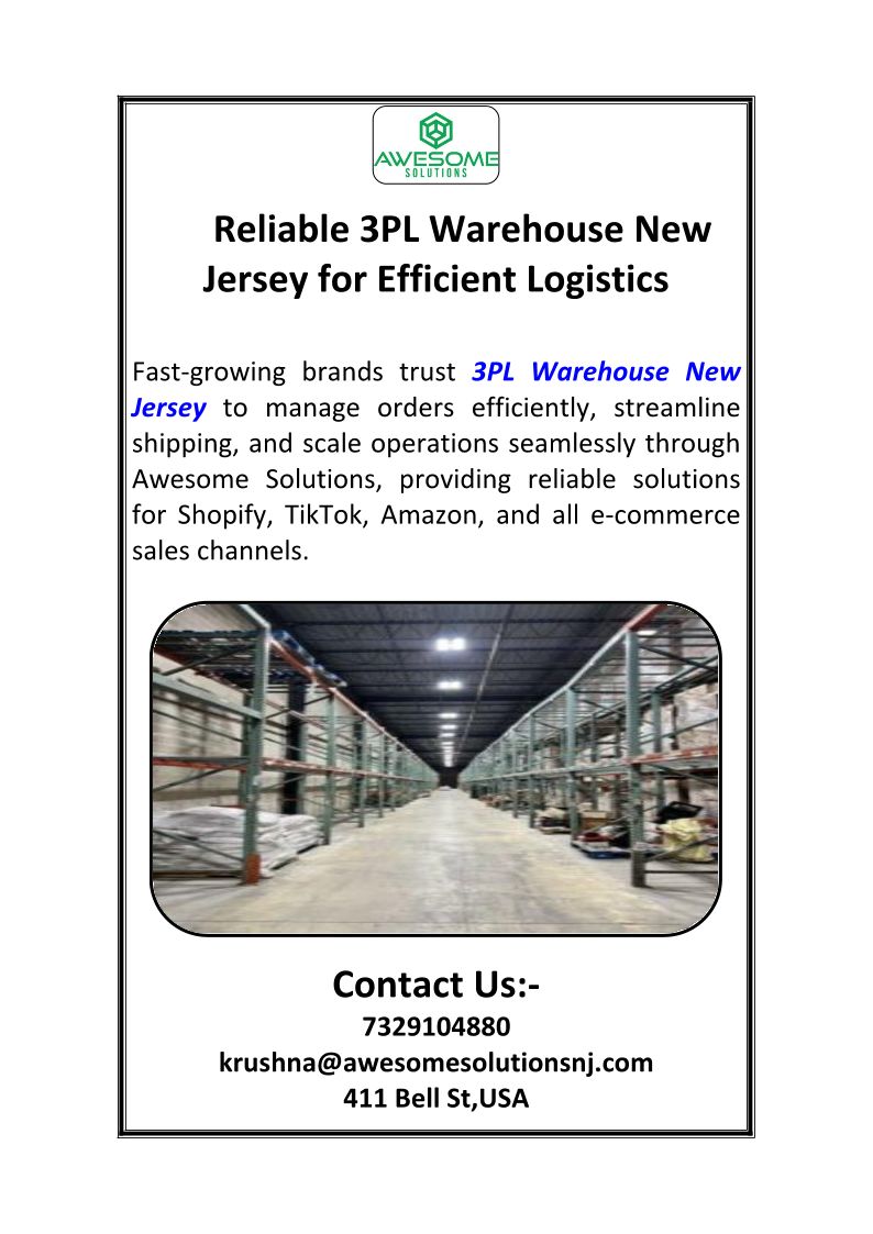 Reliable 3PL Warehouse New Jersey for Efficient Logistics