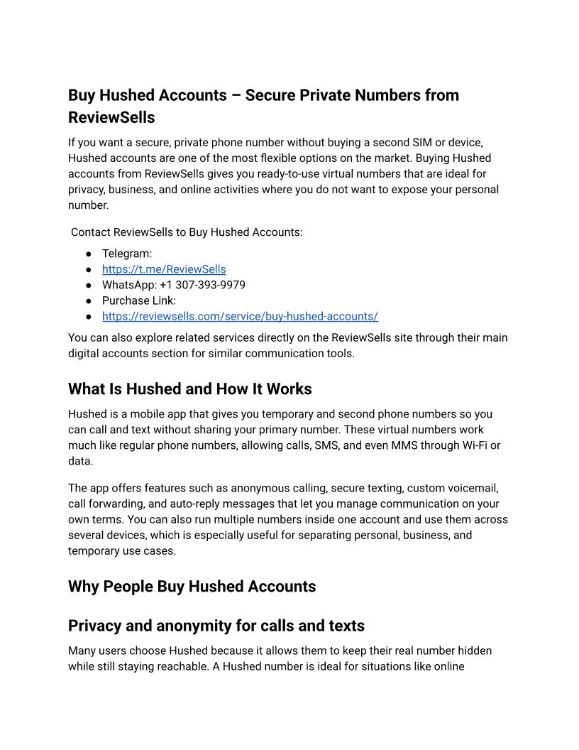 Buy Hushed Accounts – Secure Private Numbers from ReviewSells