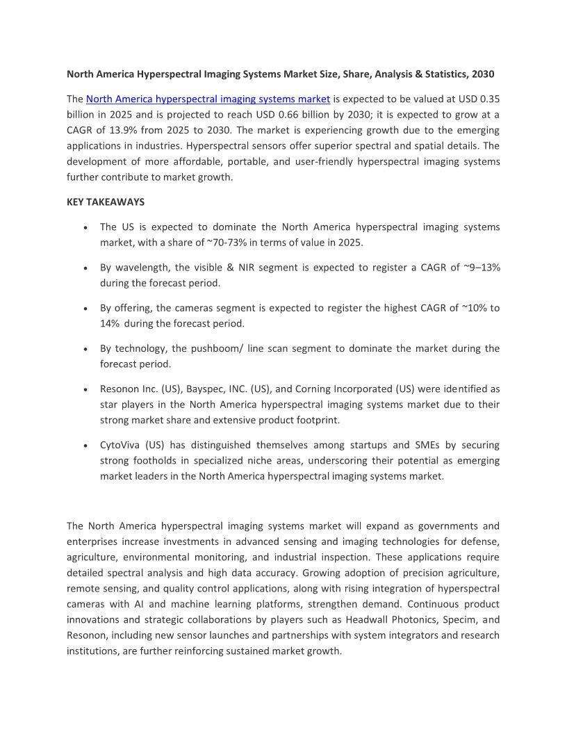 North America Hyperspectral Imaging Systems Market
