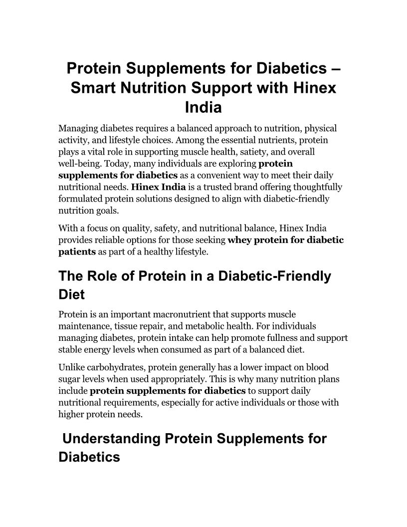 Protein Supplements for Diabetics – Smart Nutrition Support with Hinex India