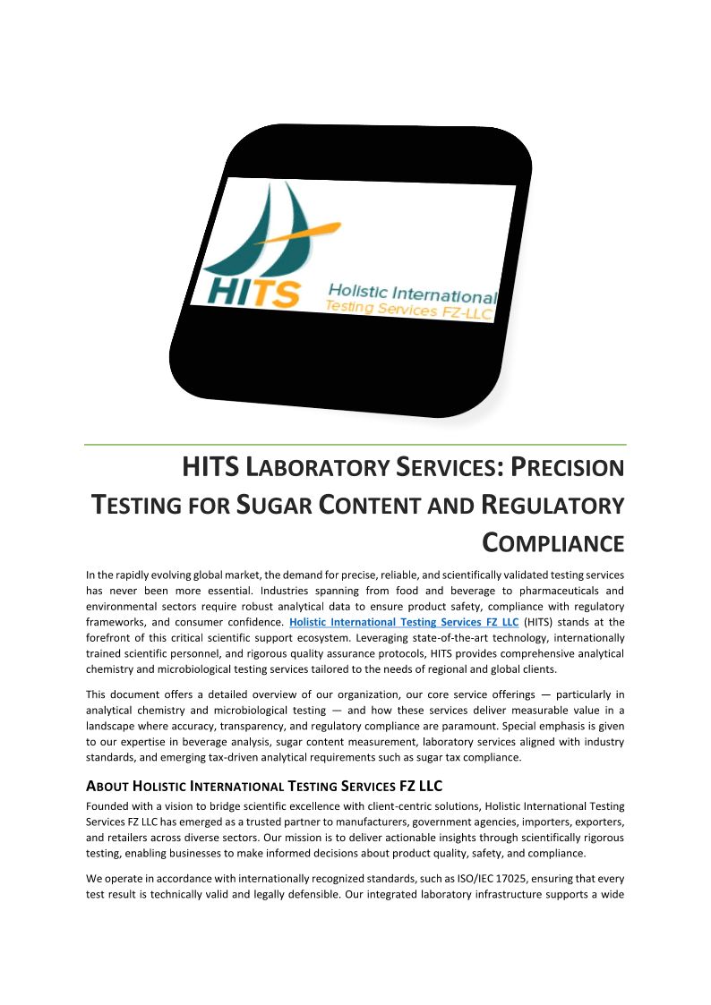 HITS LABORATORY SERVICES PRECISION TESTING FOR SUGAR CONTENT AND REGULATORY COMPLIANCE