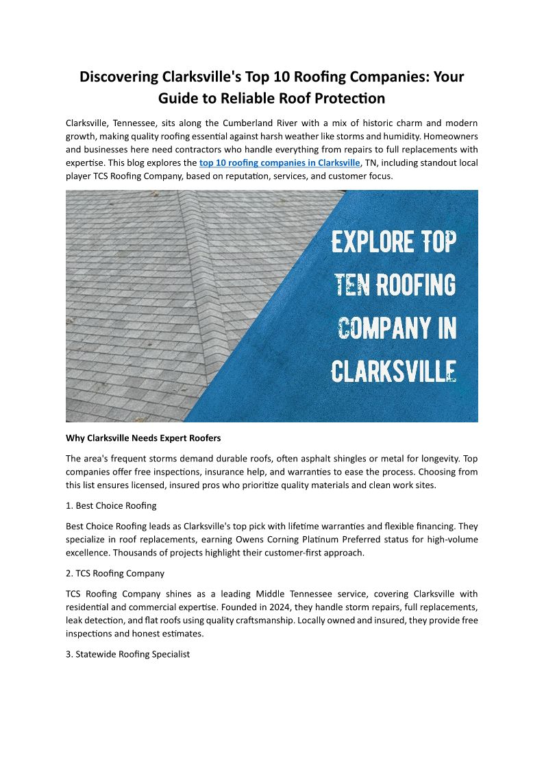 Explore Top ten Roofing Company in Clarksville TN - TCS Roofing Company
