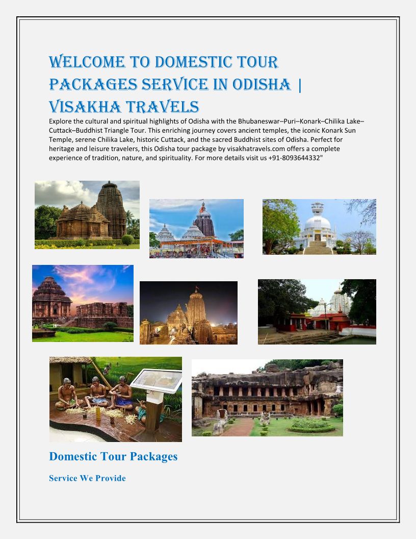 Domestic Tour Packages Service in Odisha Visakha Travels