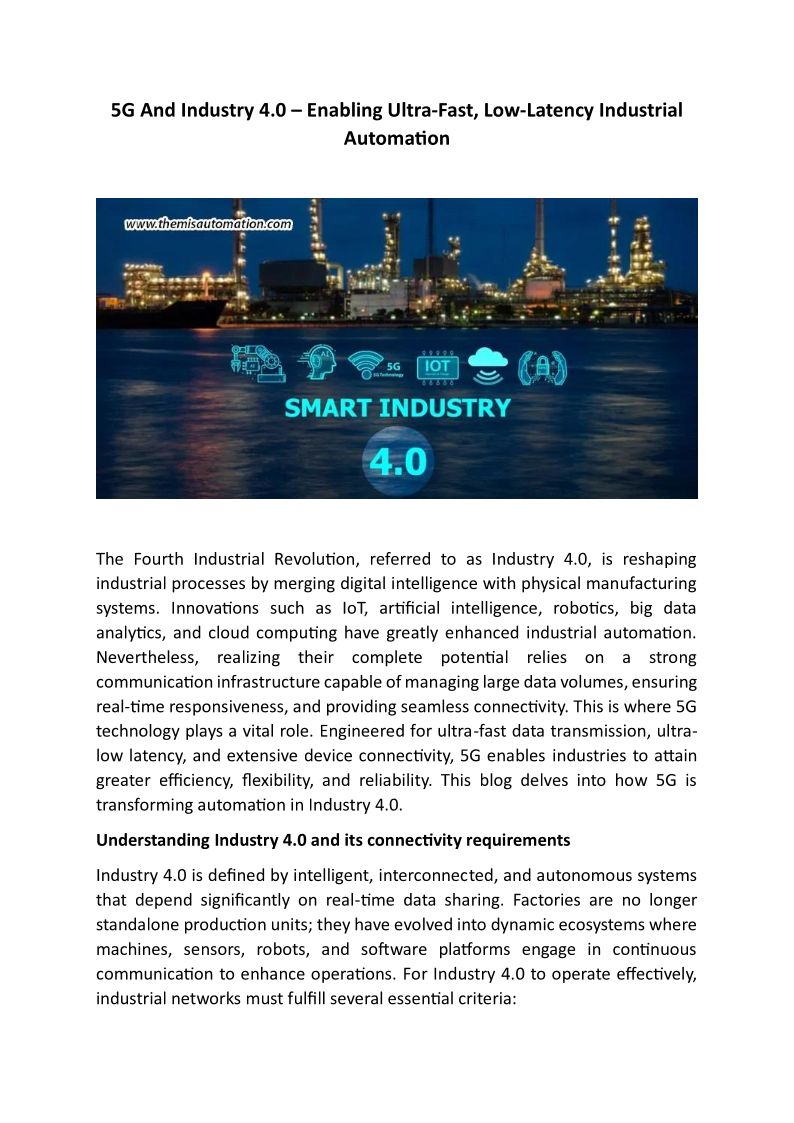 5G And Industry 4.0 - Enabling Ultra-Fast, Low-Latency Industrial Automation